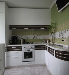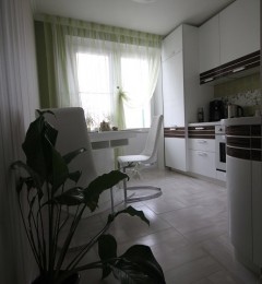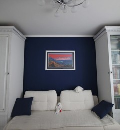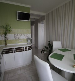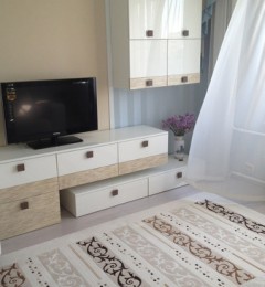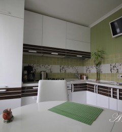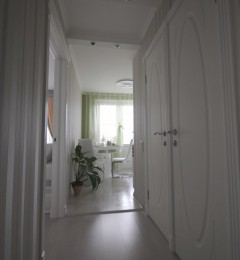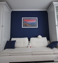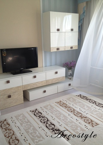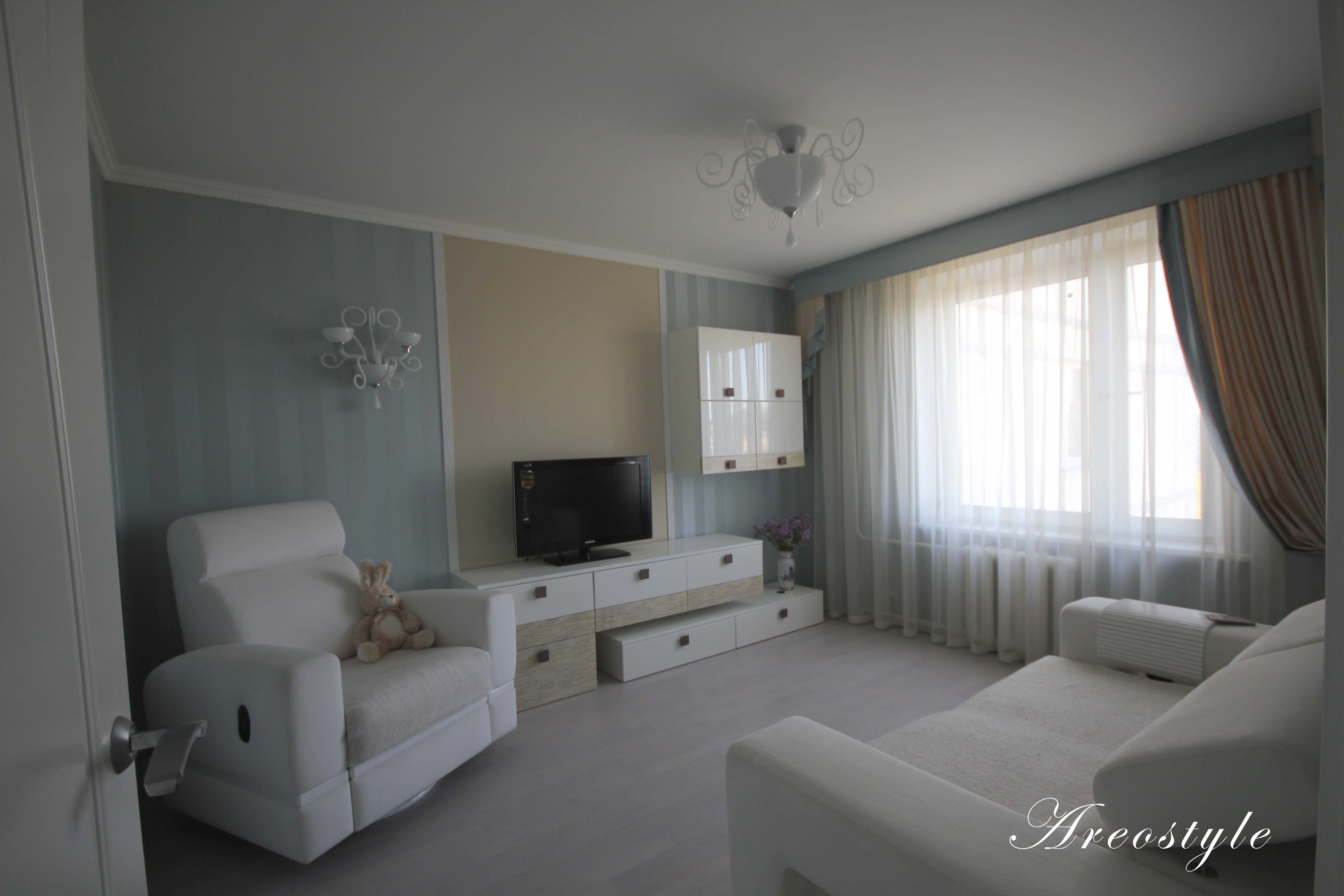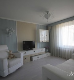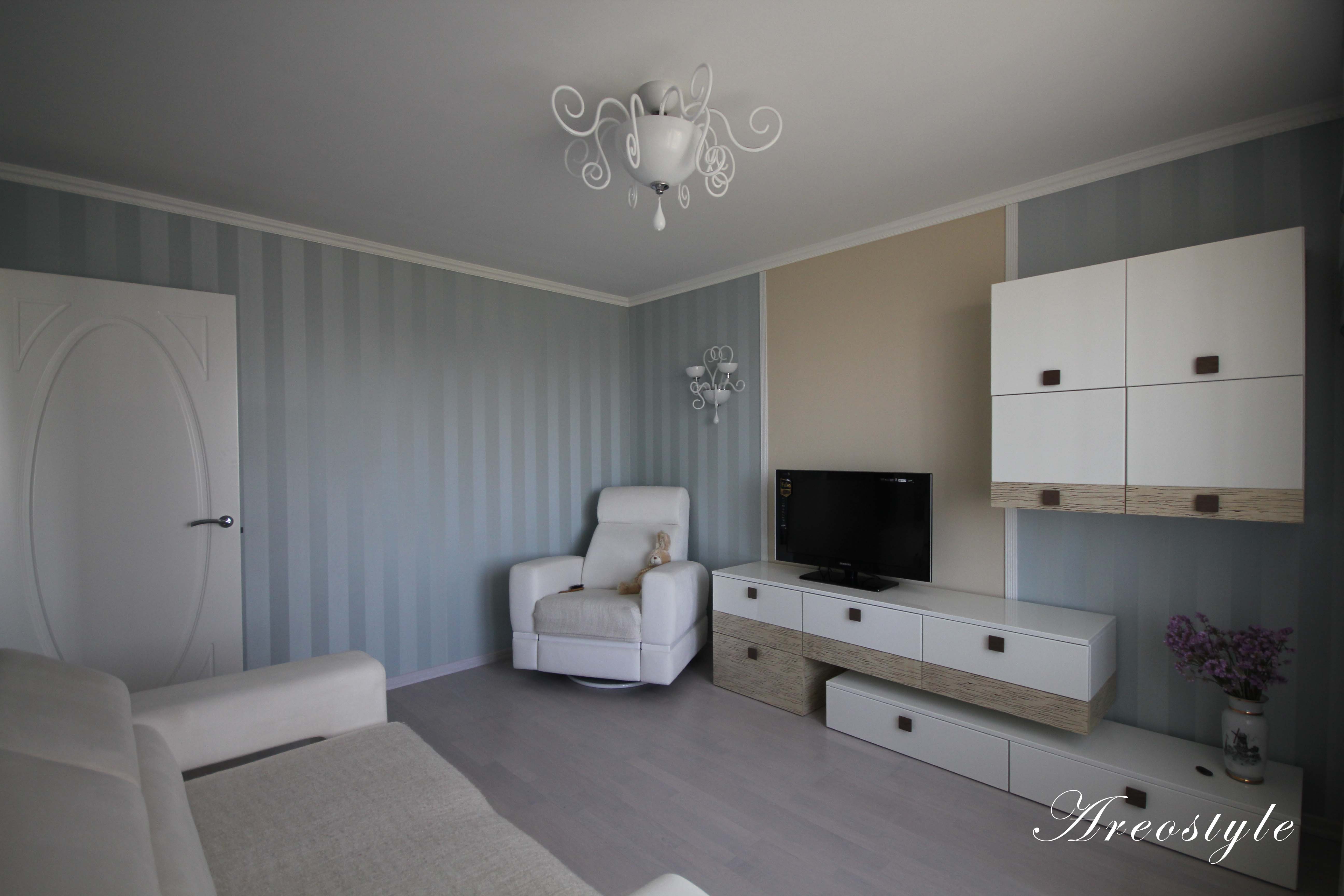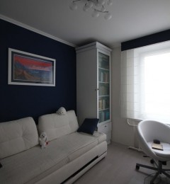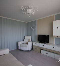 Дизайн небольшой двухкомнатной квартиры разрабатывался исходя из нескольких предпочтений владельца: функциональности, расширении пространства, и хорошего, легкого настроения от квартиры. При реализации задуманных идей были применены светлые тона в интерьере и мебели, контрастные акценты стен выполнены для расширения жилого пространства комнат. Визуального поднятия потолка удалось добиться благодаря подобранному дизайну обоев в вертикальную классическую полоску и применению потолочной лепнины. Элегантные светильники из “Муранского стекла” добавляют шарма и элегантности интерьеру.