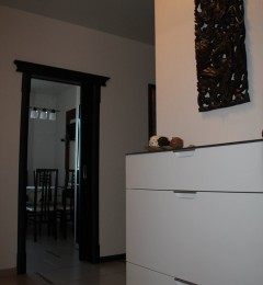 Разработка интерьера базировалось на нескольких предпочтениях: светлая квартира с контрастными элементами, максимально функциональная для молодой семьи из 3 человек. Важным акцентом стали этнические элементы декора, привезенные из путешествий. Одной из основных задач дизайнера стало гармонично вписать памятные моменты в новый интерьер.